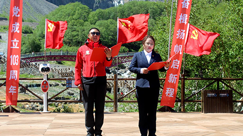 為慶祝中國共產黨成立103周年,6月27日,長白山北景區黨支部、北景區運營黨支部、北景區消防救援站黨支部以及民營企業天池黨支部在北景區溫泉廣場,共同開展了“同心向黨慶七一 奮楫揚帆啟新程”主題黨日活動。黨員、積極分子63人參加了此次活動。